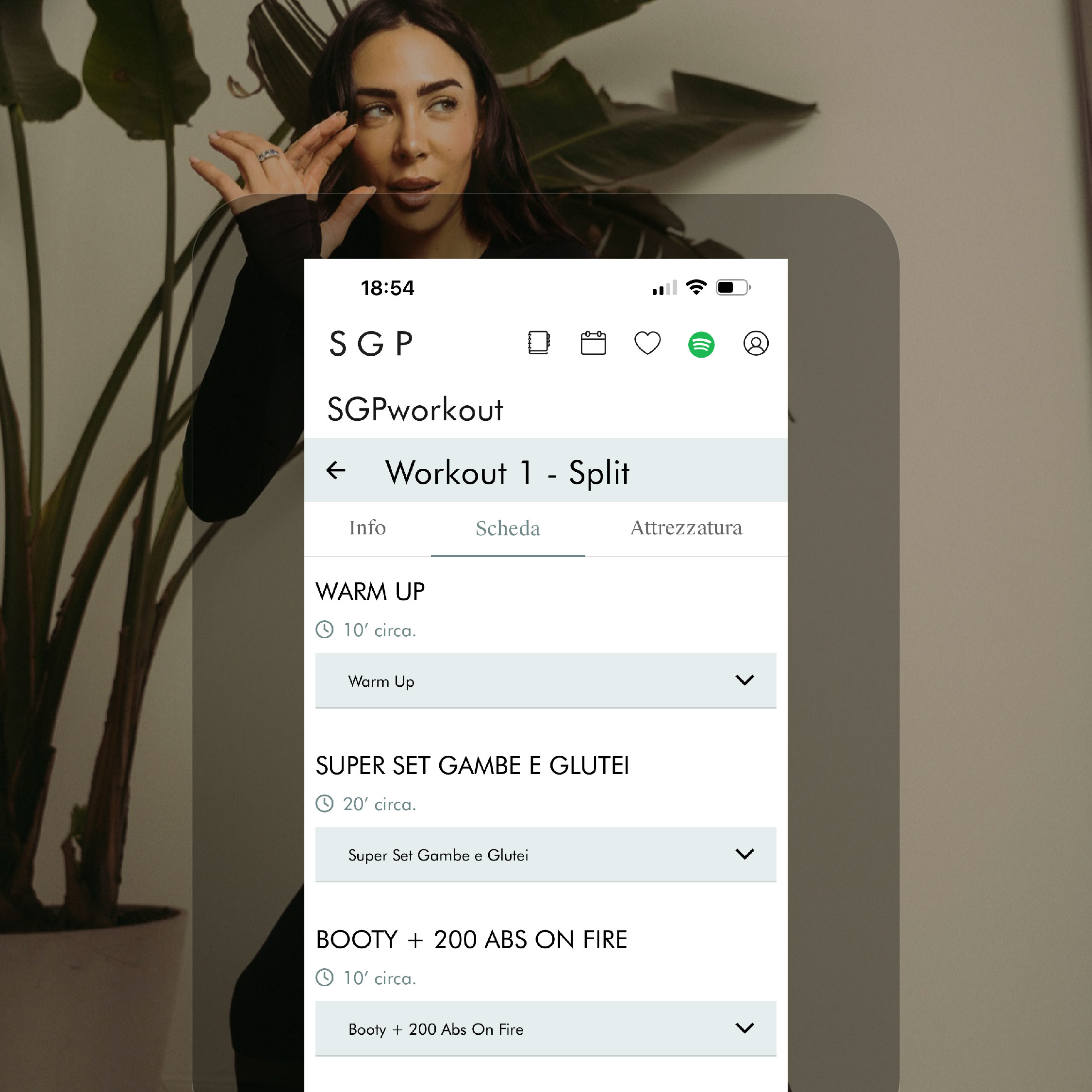 Gli allenamenti hanno durate variabili dai 20 ai 60 minuti: troverai una sezione video interamente dedicata a workout più brevi, mentre, per alcune schede – nominate “Split” – potrai ridurne la durata totale (troverai tutte le indicazioni nella sezione INFO).